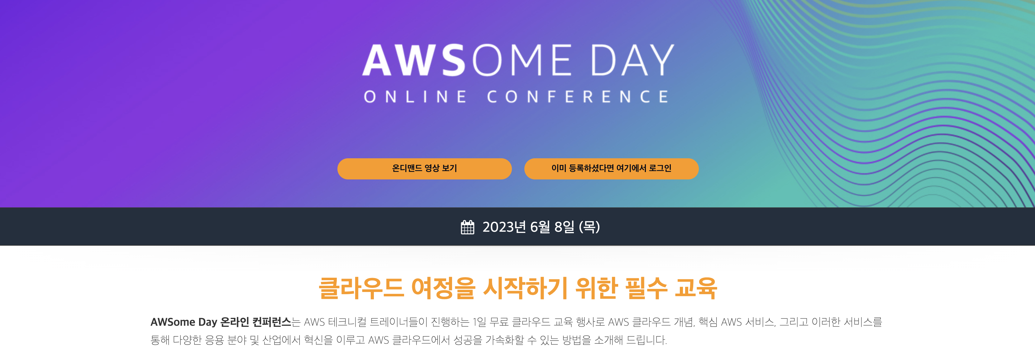 우연히 온라인 광고 배너에서 AWSome Day 온라인 콘퍼런스를 접하게 되었고, 평소에 AWS에 관심이 있던 저는 홀린 듯이 배너를 클릭하게 되었습니다.